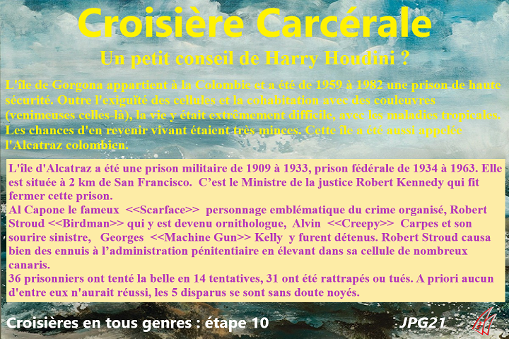 | 20260426 | Croisieres en tous genres : Ile Gorgona - Ile Alcatraz | 2026/04/26 11:00:06 |